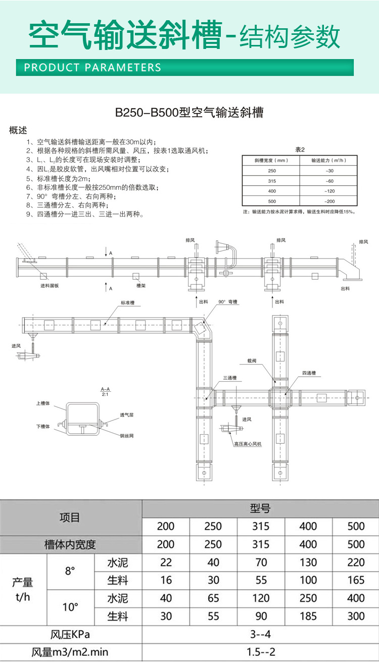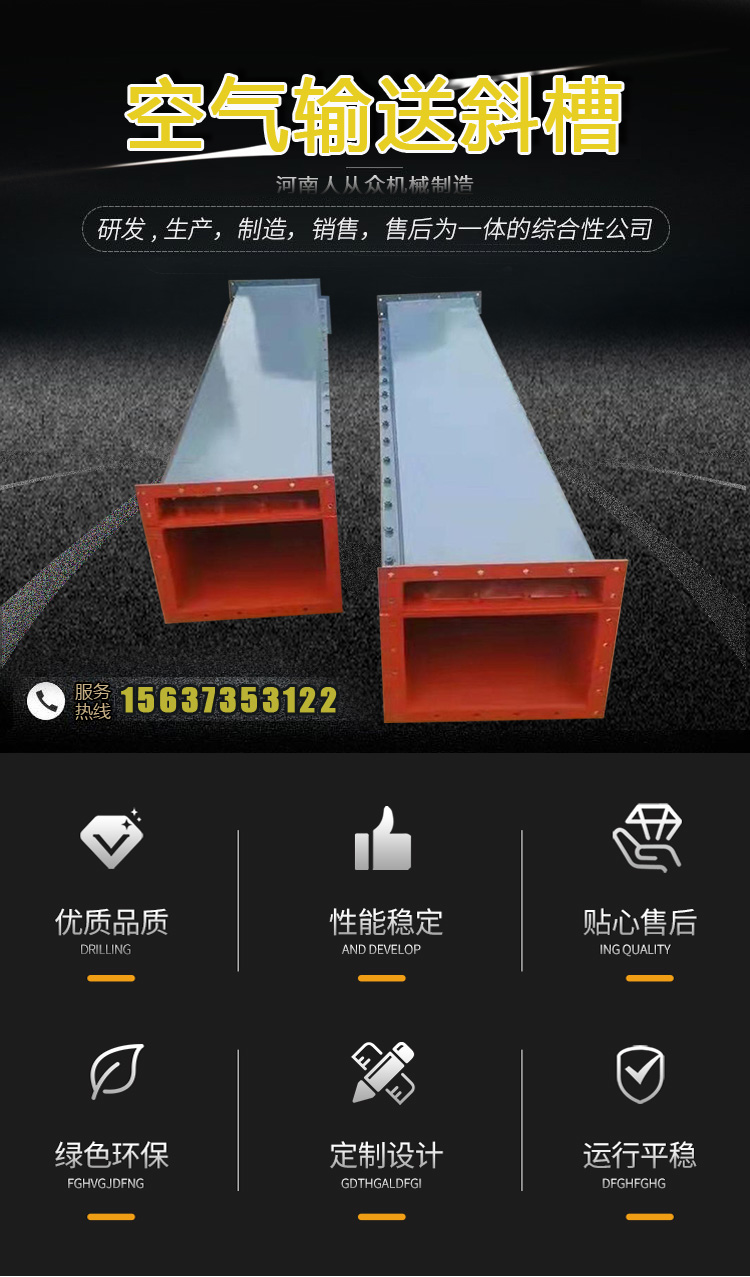 空氣輸送斜槽是通過氣流順管道輸送粉末顆粒物料的裝置。有三種類型:吸入式、壓力式和混合式。其工作原理是利用氣流的動能使顆粒物料隨氣流沿管道懸浮輸送;設(shè)備主體部分無傳動部分,采用新型涂層,便于密封操作和管理。