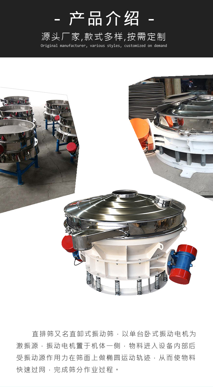 雙電機(jī)直排篩又叫直排篩,是以兩個(gè)振動(dòng)電機(jī)作為激振源,進(jìn)料口和出料口在同一垂直方向,極大提高了篩分效率。