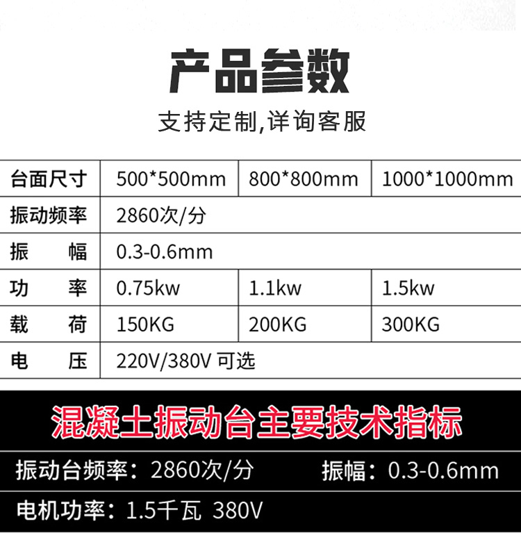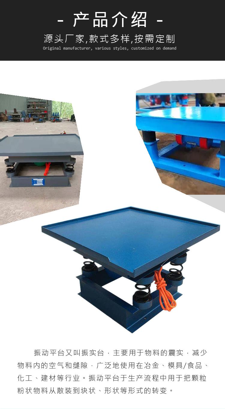 混凝土振實臺用于混凝土泥土砂漿等物料的振實,功率大,噪音低,功率可調,操作簡單,帶有自鎖緊功能,可保證在生產線準確定位。