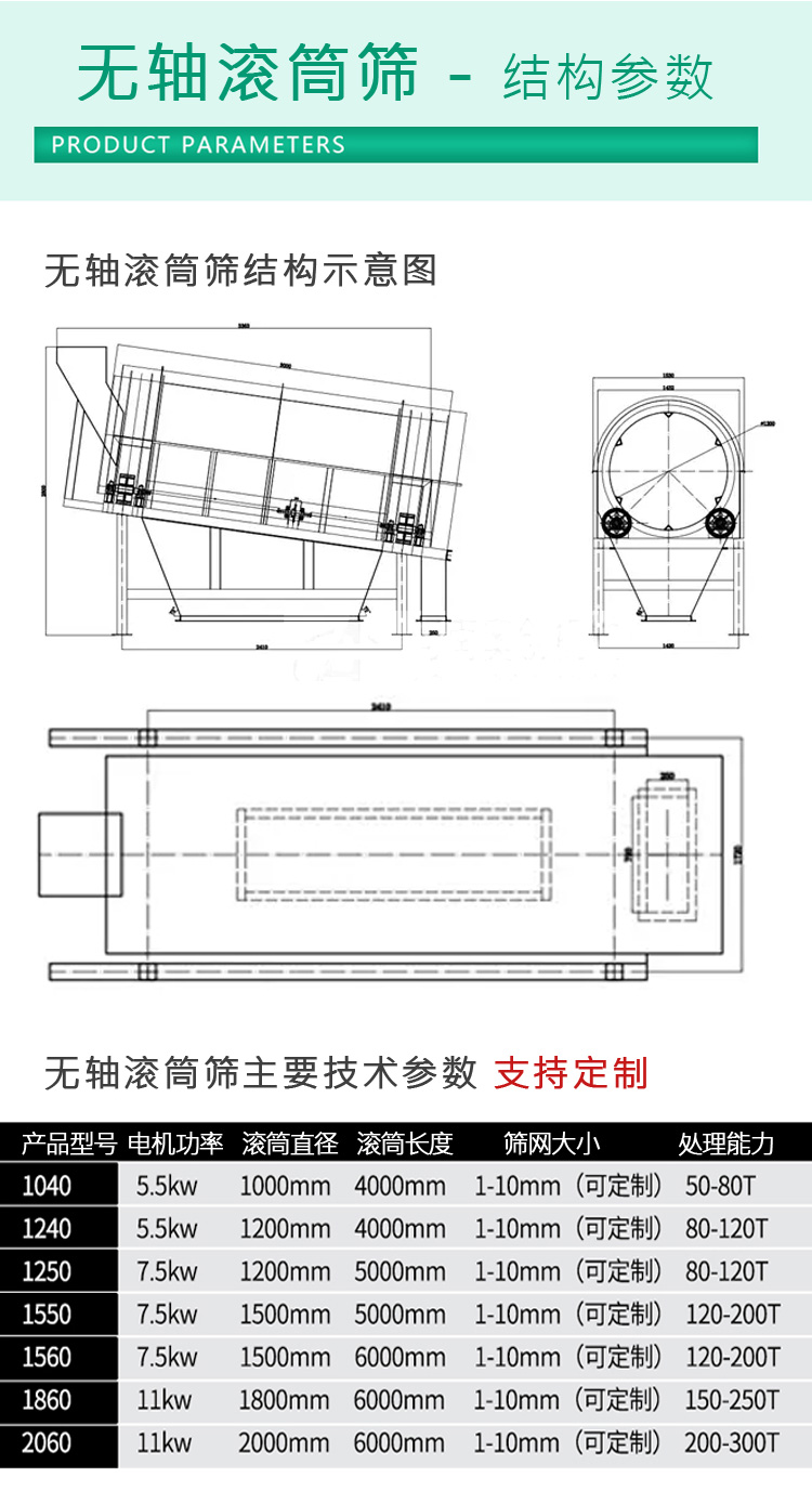 大型可移動式雙層無軸滾筒篩大型沙場礦場煤炭礦石沙子篩分機篩石機
