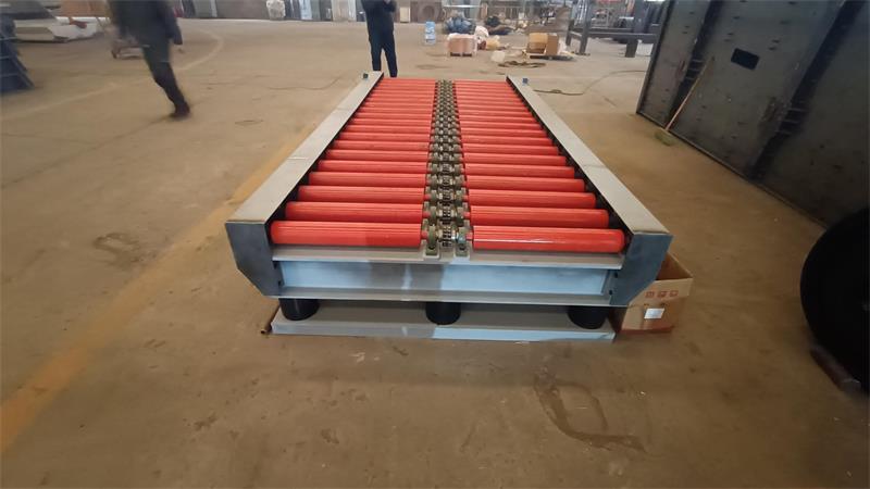 客戶定制滾軸多功能振動輸送平臺1臺,普鋼材質,承重:2000KG,板厚:14mm, 電機:YZS20-4,1.1KW*4臺, 電壓380V,50HZ。滾軸帶動力;