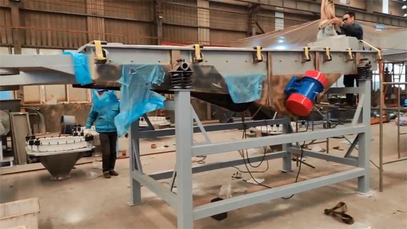 客戶定制Rcz1245-1風冷式直線篩,接觸物料304不銹鋼,進料高度2.5米,出料高度1.6米,篩下物前端出料對接噸包,篩上物側邊出料,配2*2mm不銹鋼編制網,電壓380V50hz三相電,上蓋用繃帶固定快速拆裝,不帶風機,進料口前端預留進風口。另配一張2*2mm,2.5*2.5mm的篩網。(按最終客戶確認的圖紙生產),不銹鋼噴砂處理。