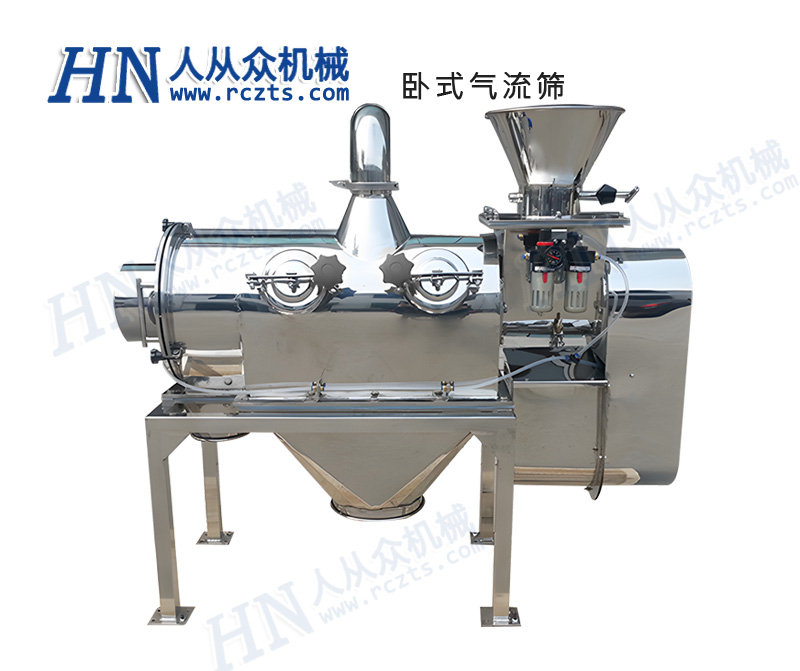 臥式氣流篩是一種常見的篩分設備,用于對粉末和顆粒物料進行分級和篩分的工藝。它采用氣流作為主要篩分力,通過氣流的作用將物料進行分離和分類。
