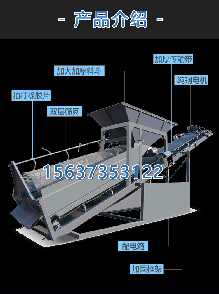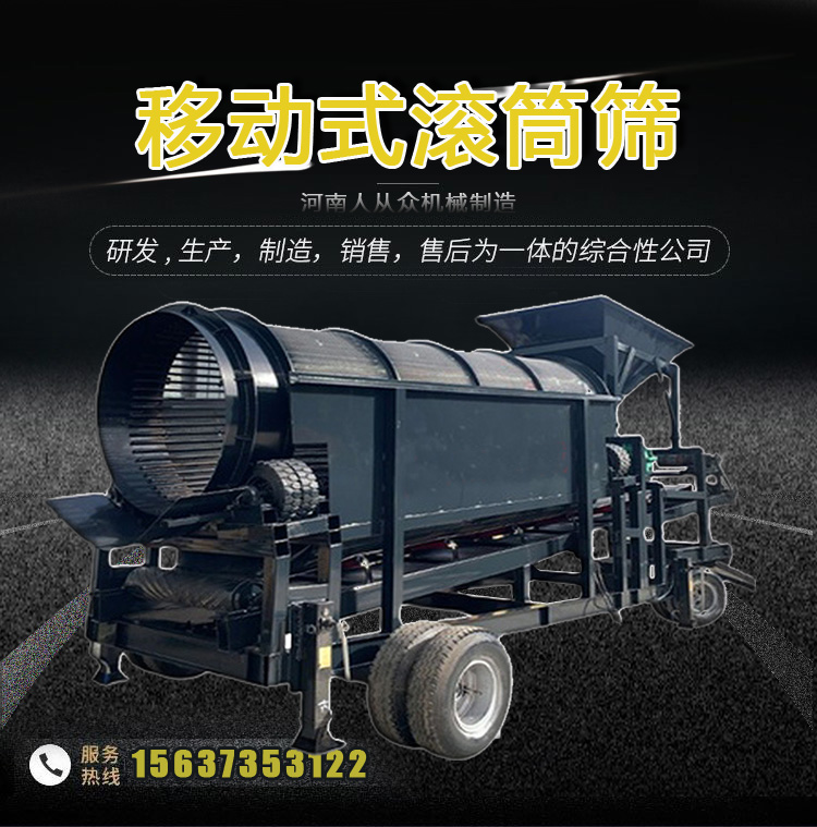 移動式滾筒篩是一種不同于振動篩篩分設備。它可以篩分一些潮濕物料。避免了振動篩在篩分濕物料時的堵篩問題,整體與地平面處于一定夾角的傾斜狀態,連續滾動多次循環,通過反復滾動滑動,使砂料充分分散和分離。