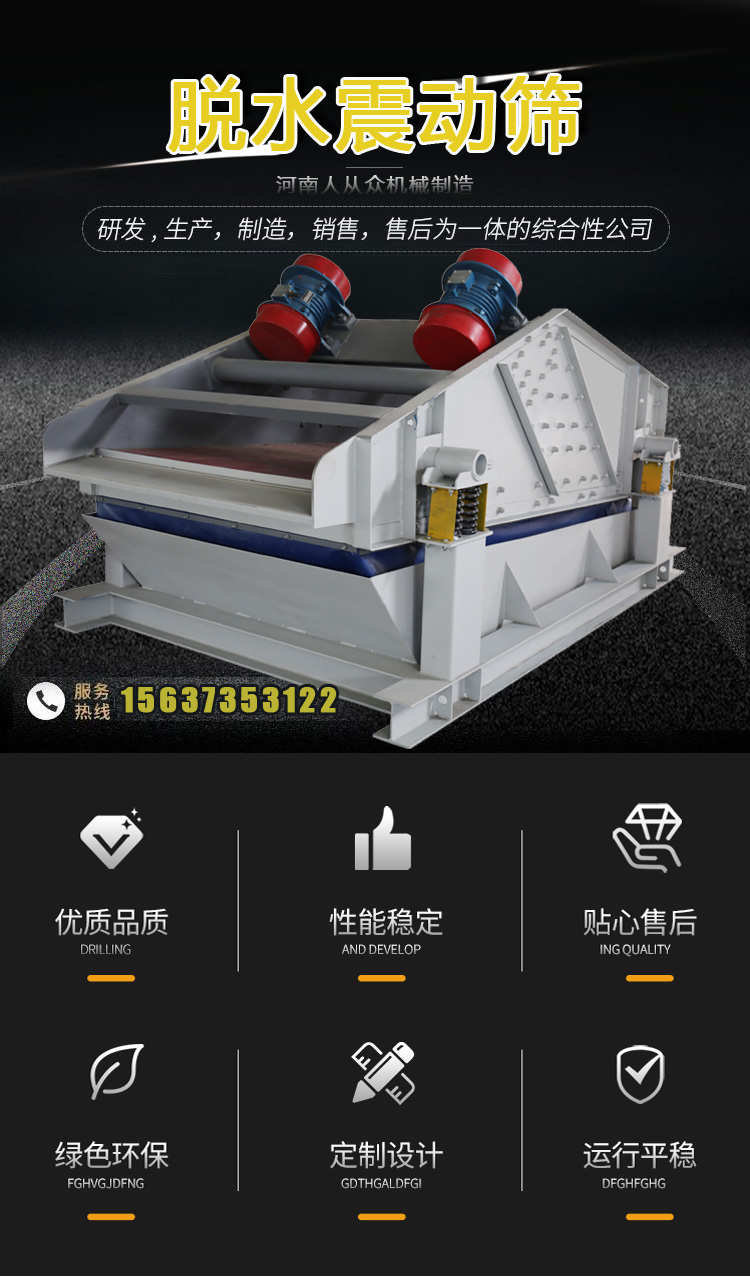 重型直線脫水篩,主要用于砂石料礦山的洗砂、選礦廠的尾礦干排等,其由電機、旋流器、渣漿泵、直線振動篩、清洗槽、回流箱等組成,處理能力一般為10-100噸/小時,可根據處理能力定制生產.