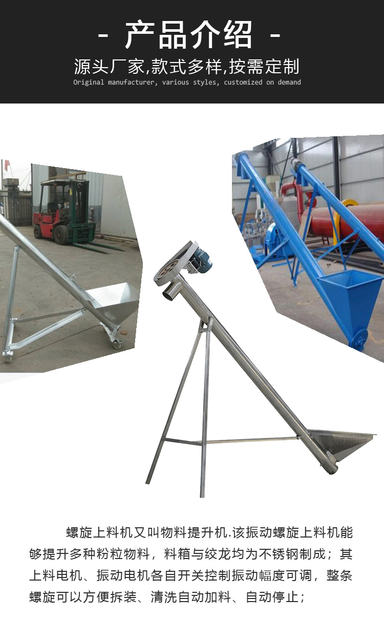 螺旋輸送提升機通常用于輸送顆粒狀粉末材料。適用于化工、食品、建材、包裝等行業對喂料要求較高的設備。它具有速度快、精度高、應用廣的特點。